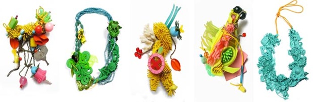 Lei stessa dice : “Per me, le mie collane sono come poesie sul corpo. Colori e forme che formano frasi e segni, oggetti di giocare e comunicare insieme e si fondono con l’utilizzatore in un dipinto mozzafiato.”